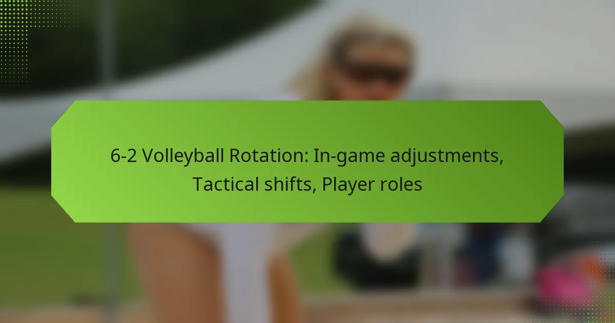 In a 6-2 volleyball rotation, teams can implement various in-game adjustments to enhance performance and exploit opponent weaknesses. These adjustments focus on player positioning, effective substitutions, communication, and real-time decision-making to maintain a competitive edge.