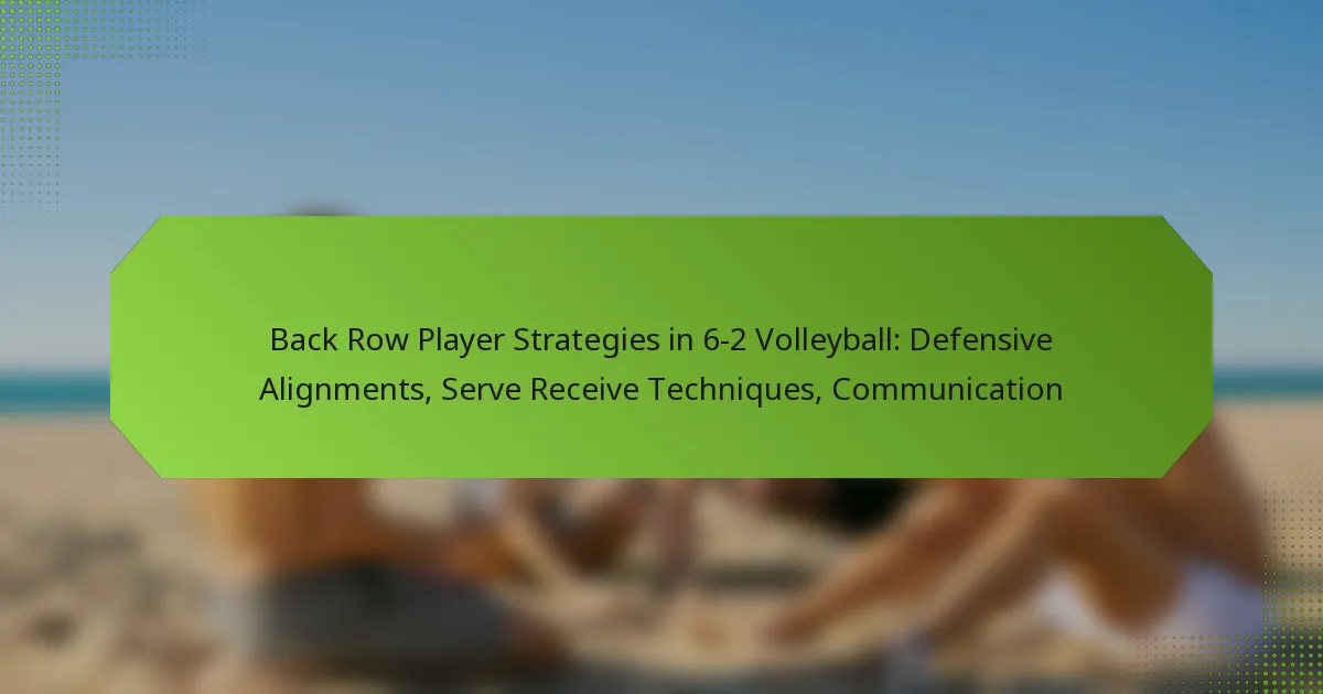 In a 6-2 volleyball system, back row players are crucial for effective defence, utilising specific alignments to counteract opponents’ attacks. These alignments focus on maximising coverage and ensuring quick transitions from defence to offence.
