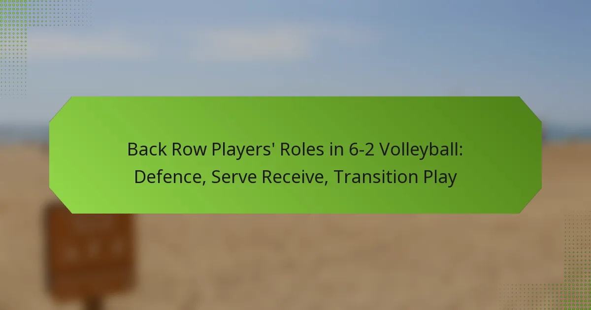 Back row players play a crucial role in defence within a 6-2 volleyball system by focusing on preventing attacks and facilitating smooth transitions. Their positioning, movement, and communication are vital for countering opposing plays and maintaining team cohesion.