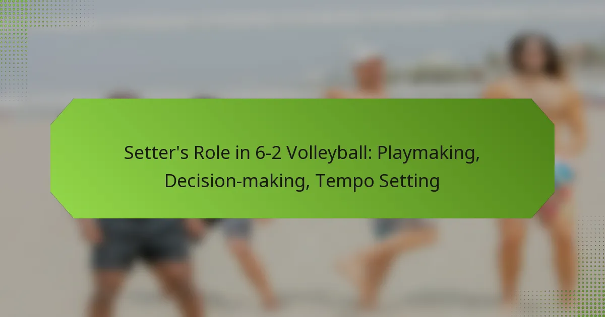 A setter plays a crucial role in playmaking within a 6-2 volleyball system by delivering accurate sets and making strategic decisions that create scoring opportunities. Their ability to read the game and adapt to dynamic situations significantly influences the team’s offensive effectiveness.